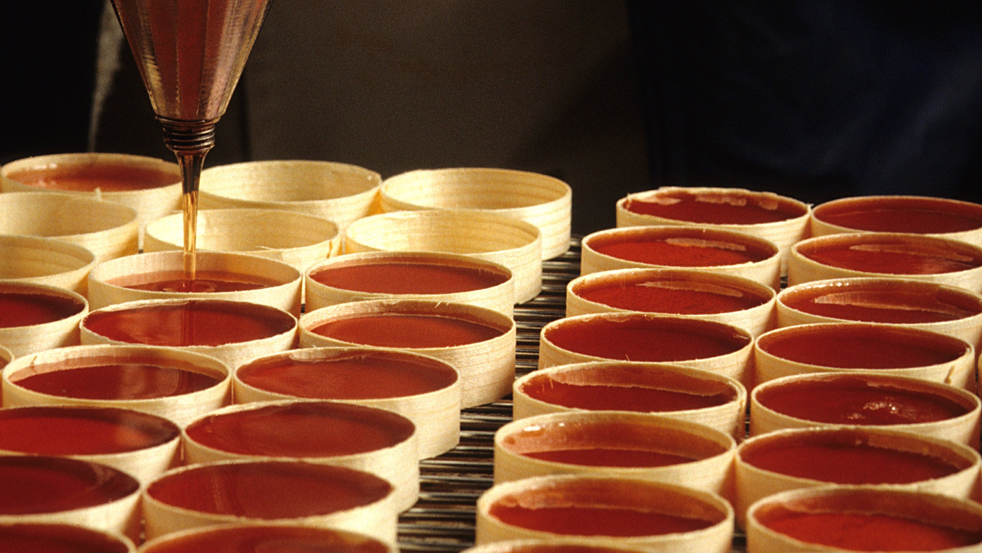 Les fruits sont d’abord découpés, puis leur jus est recueilli avec une méthode propre à la Maison Gouchault, avant d’être chauffé lentement dans de grandes bassines de cuivre. Température, sucre, texture : chaque paramètre est maîtrisé pour sublimer la saveur naturelle du fruit. Cette preparation donne au Cotignac sa texture fondante et son goût si singulier.
